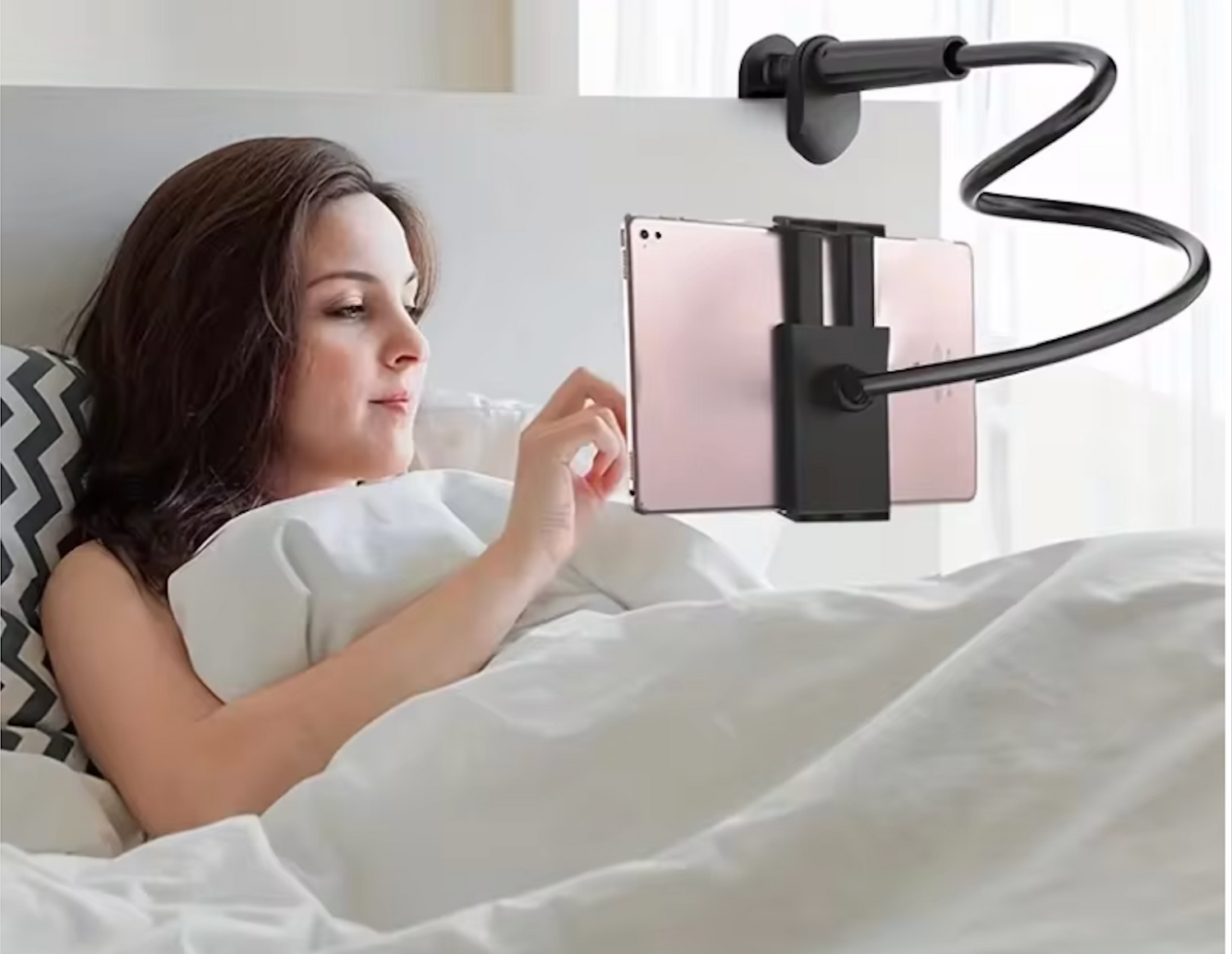 Doté d’une base renforcée et ajustable jusqu’à 6,5 cm, ce support s’accroche fermement à votre tête de lit, bureau, table basse ou même au comptoir de cuisine. Les coussinets en silicone protègent vos meubles contre les rayures tout en assurant une stabilité sans faille.